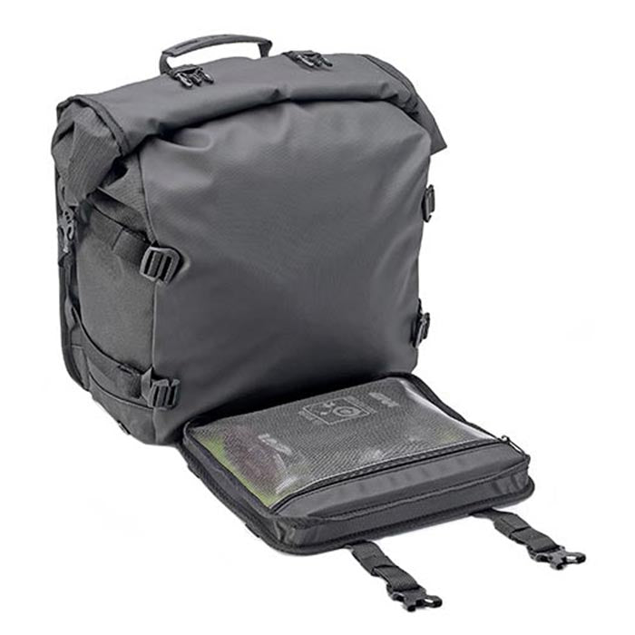 Las alforjas GRT720 Canyon, gracias a los pasadores laterales, permiten modular la configuración del equipaje para adaptarse a tus necesidades de carga, desde viajes cortos hasta viajes más largos y exigentes, para hacer frente con la ayuda de la GRT722 como carga lateral adicional.