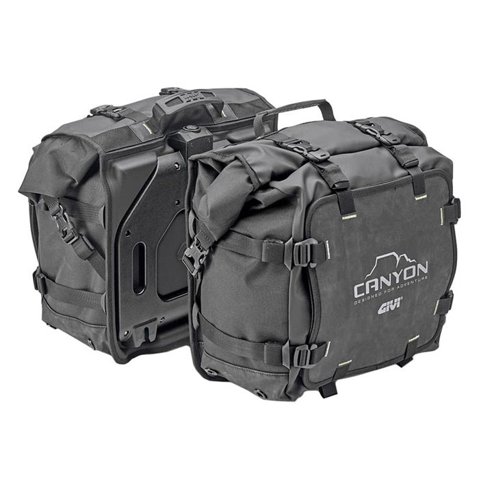 Alforjas Givi GRT720 Canyon. Alforjas impermeables, 25+25 L. Diseñadas para motos off-road, equipan el sistema de fijación MONOKEY®, compatible con los portamaletas laterales tubulare PL, PLR, PLO MK, PLOR MK, PLO N (+OFMK), PLOR N (+OFMK).