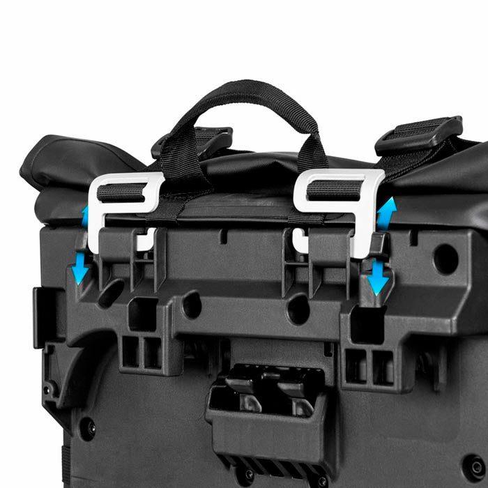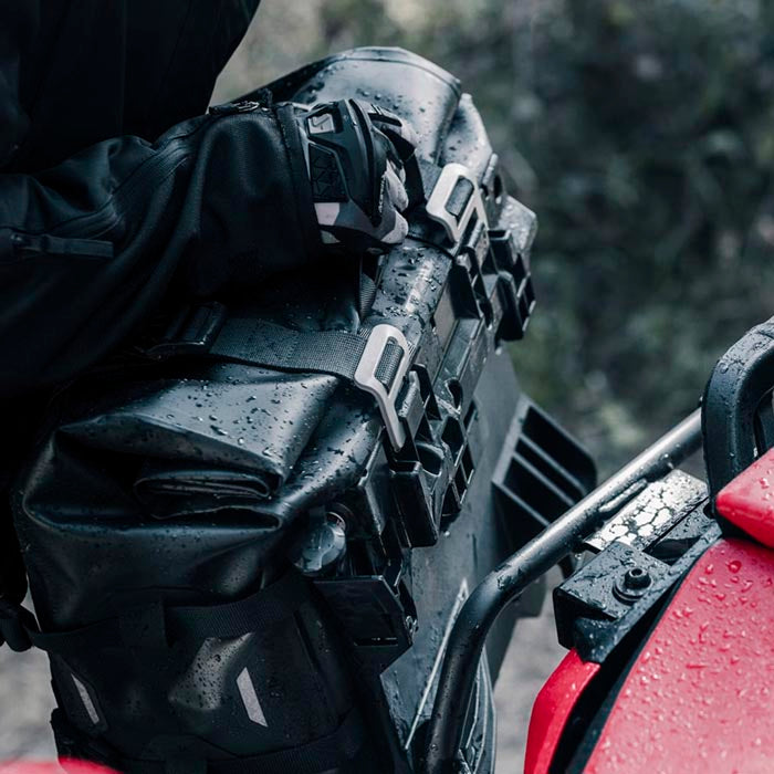 - 6 hebillas para ajustar la bolsa al tamaño de la carga, mejorando estabilidad durante la conducción.
