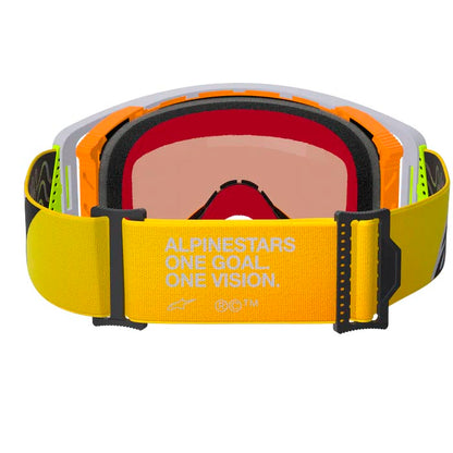 Antiparras Alpinestars Supertech Corp Amarillo Fluor/ Gris/ Rojo. Gafas off-road que proporcionan una excelente visibilidad gracias a la lente Absolute Vision™, esta dispone del sistema Super-Lock® que la mantiene sellada de forma hermética en su posición correcta y permite cambiarla de forma sencilla. Su montura aporta una gran resistencia y evita la entrada de residuos y suciedad, cuenta con una espuma multicapa 3D moldeada con un canal de humedad que guía el sudor lejos de la lente y un sistema de ventilación Forced-Air que aporta una mejor ventilación.