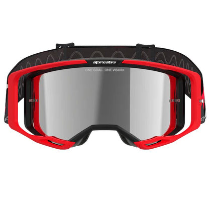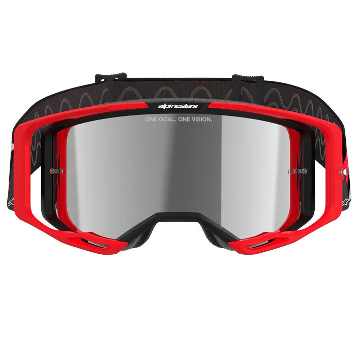 Gafas Alpinestars Vision 8 Luar Rojo / Negro / Lente Plateado Espejo. Gafas de uso off-road que proporcionan una gran visibilidad periférica gracias a su lente Ultrawide. Estructura de alta resistencia con tecnología de canalización de la humedad para evitar el sudor y un sistema RAM-Air que proporciona un flujo constante. Cuenta con una espuma facial de 17mm y una correa ancha de 45mm que evita el deslizamiento.