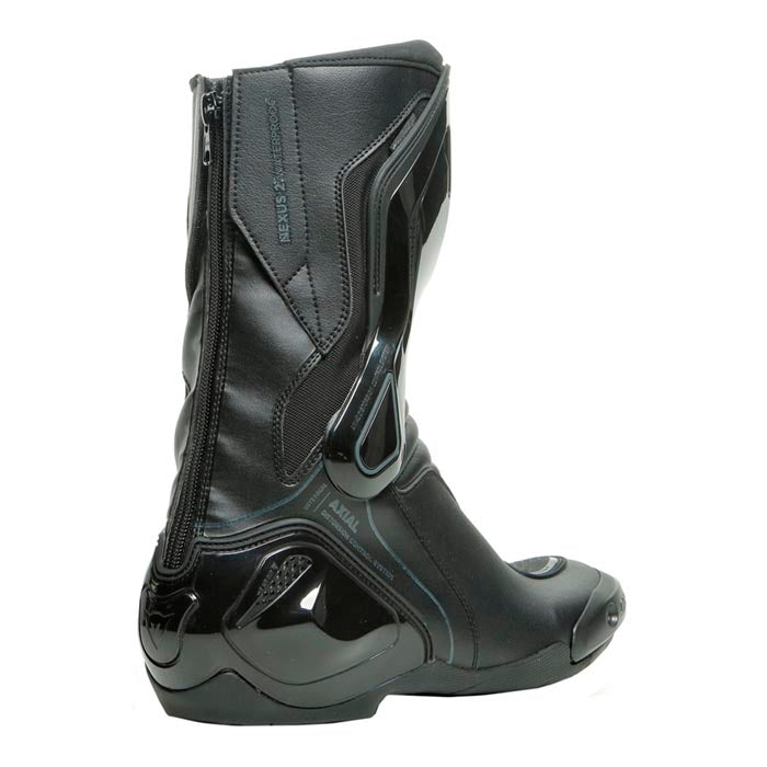 Botas Dainese Nexus 2 D-WP Negras. Bota deportiva diseñada para ofrecer un excelente rendimiento en cualquier condición climática gracias a la membrana impermeable D-WP. Fabricada en Microfibra y tejido D-Stone, las botas Dainese Nexus 2 D-WP ofrecen altos niveles de seguridad y confort. Incorporan protecciones y refuerzos estratégicamente ubicados y cuentan con el sistema Axial Distortion Control, diseñado para reducir el riesgo de torsiones del pie y para protegerlo contra los golpes.