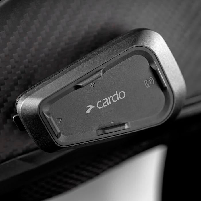 Intercomunicador Cardo Spirit Duo (2 unidades emparejadas). El nuevo intercomunicador de moto Cardo Spirit dispone de la última tecnología Bluetooth y ofrece todos los elementos esenciales que necesita un motociclista joven y urbano, combinando detalles, calidad de construcción y una durabilidad sin precedentes. Entre todas sus características, destacar una distancia de comunicación de hasta 400m entre moto y moto, actualizaciones de software sin cables y 10h de conversación con carga rápida de batería. Dispone de unas características inmejorables a un precio muy asequible.