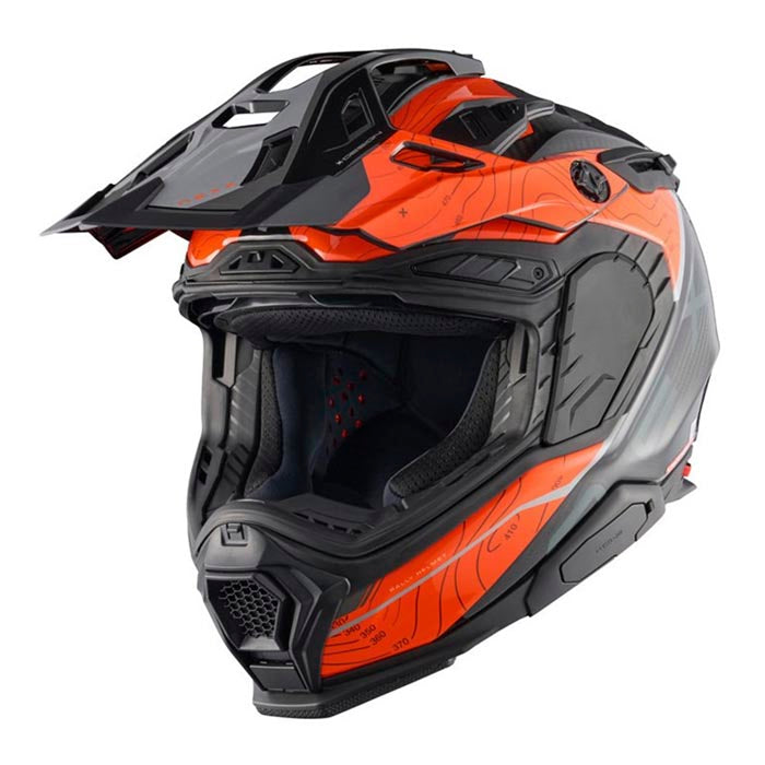 Casco Nexx X.WED3 Carbono Furka Naranja / Gris. Sucesor del exitoso X.WED 2, el casco integral de uso Trail por excelencia de Nexx con un diseño moderno muy funcional y versátil. Este casco Adventure cuenta con innovaciones técnicas que lo hacen único ofreciendo altas prestaciones. Fabricado en fibra de carbono que aporta resistencia y ligereza. Destaca por centrarse en la seguridad incorporando numerosos sistemas que hacen el casco mucho más seguro en caso de accidente, como el sistema de liberación rápida F.R.S o las almohadillas X-FOAM para evitar lesiones de clavícula. Calota EPS con sistema antivibración que garantiza mayor estabilidad y confort, sistema de retroceso de la pantalla y un visor solar más amplio. Dispone de un sistema de ventilación innovador con 7 entradas y 4 salidas de aire que permite un adecuado flujo del aire. Diseñado para instalar un intercomunicador y una cámara GoPro (no incluido) para ofrecer una experiencia incondicional.