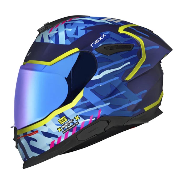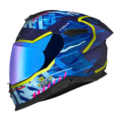 Casco Nexx Y.100R URBANGRAM INDIGO BLUE. Casco diseñado para optimizar la estabilidad e insonorizar su interior, esto se ha conseguido gracias a una estética muy aerodinámica. Este casco deportivo está fabricado con la tecnología Polyfusion de alta resistencia a los impactos. La pantalla dispone del sistema de cambio rápido X-Swift y un visor solar 80% negro que ofrece una perfecta protección contra los rayos UV. Eficiente sistema de ventilación formado por varias entradas y salidas de aire, junto con un spoiler trasero que mejora la estabilidad. Se puede instalar un intercomunicador y una cámara GoPro para mantenerte siempre conectado (no incluidos). Cierre micrométrico.