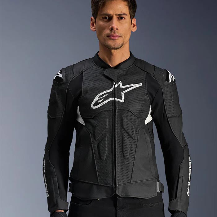Chaqueta Alpinestars Dusk Airflow Negro / Blanco. Chaqueta Racing con una estética moderna y elegante ideal para épocas calurosas ya que aporta una óptima transpirabilidad gracias a los paneles perforados situados en la parte delantera y trasera. Al ser una prenda deportiva está confeccionada en cuero bovino de alta calidad y resistencia a la abrasión y destaca por los paneles “Comfort Sport” que ofrecen un ajuste ergonómico. Incorpora protecciones Nucleon Flex Plus de Nivel 1 en los hombros, Nucleon Plasma de Nivel 1 en la zona de los codos y protecciones externas DFS para mayor resistencia al desgarro, además de tener predisposición para protector dorsal y pectoral y sistema airbag (no incluidos). Cuenta con varias inserciones elásticas para mayor libertad de movimiento y zonas acolchadas para mayor confort. Cierre delantero mediante cremallera.