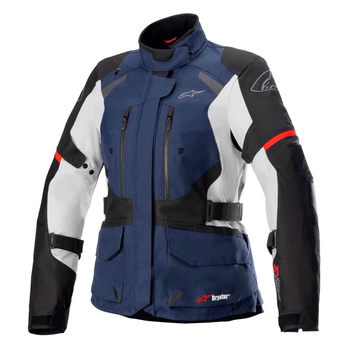 Chaqueta Apinestars Andes V3 Drystar Lady Axul oscuro / Negra. Chaqueta touring con ajuste específico para mujer que incorpora la exclusiva membrana Drystar 100% impermeable y transpirable de Alpinestars. Dispone de forro térmico interior desmontable y de el nuevo sistema de ventilación directa DVS. Incorpora protecciones desmontables Nucleon Flex Plus en hombros y codos, compartimentos para montar la protección de espalda y de pecho y numerosos ajustes y bolsillos para un perfecto almacenaje.
