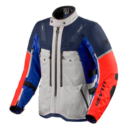 Chaqueta Revit Sand 5 H2O Plata / Azul. Chaqueta de uso touring-adventure perfecta para utilizarla en cualquier época del año. Ofrece una gran versatilidad gracias a su forro térmico y su membrana impermeable desmontables que te aportarán el aislamiento necesario en invierno y amplias aperturas de aire que te ofrecerán una correcta ventilación durante verano. Está confeccionada en poliéster Ripstop 600D que proporciona gran resistencia a la abrasión. Incorpora protecciones desmontables SEEFLEX en codos y hombros, con predisposición para acomodar protector dorsal, pectoral y collarín (no incluidos) para obtener la máxima protección. Permite la colocación de una bolsa de hidratación de 1,5L (no incluida). Cremallera de unión chaqueta-pantalón. Cierre mediante cremallera delantera.