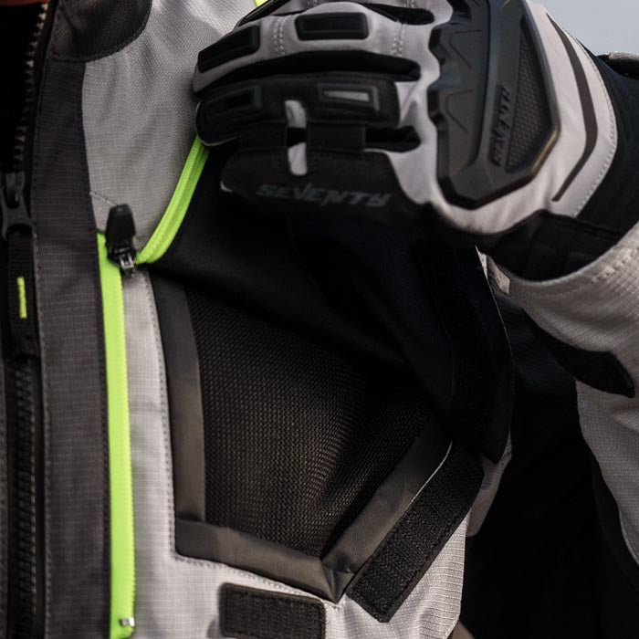 La Seventy SD-JT67 Tanami Touring Hombre es la chaqueta 4 estaciones definitiva. Fabricada en resistente Ripstop con paneles elásticos, ofrece Protecciones Windflex Nivel 2 en codos y hombros, y Homologación AA para máxima seguridad. Es 100% impermeable (Dry70) y térmica (Warm70 con forro desmontable). Incluye ventilaciones ajustables y detalles reflectantes. Ideal para touring y aventura sin límites de clima.