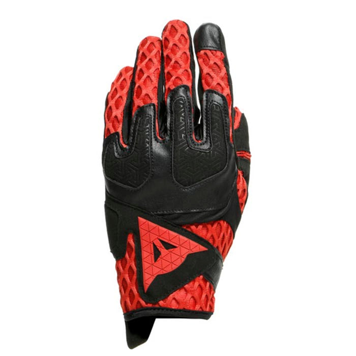 Dainese Air-Maze Gloves Black / Red. Summer gloves with a sports look made of ventilated mesh fabric with reinforced synthetic suede palm. They incorporate reinforcements on the knuckles and stand out for being very comfortable, light, resistant, and ventilated. They are compatible with the use of touch screens.