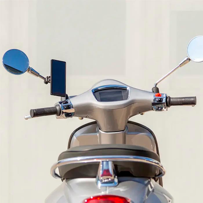 Con el Mirror Mount Pro, puedes colocar tu teléfono móvil de forma rápida y segura en el espejo del ciclomotor o la motocicleta.